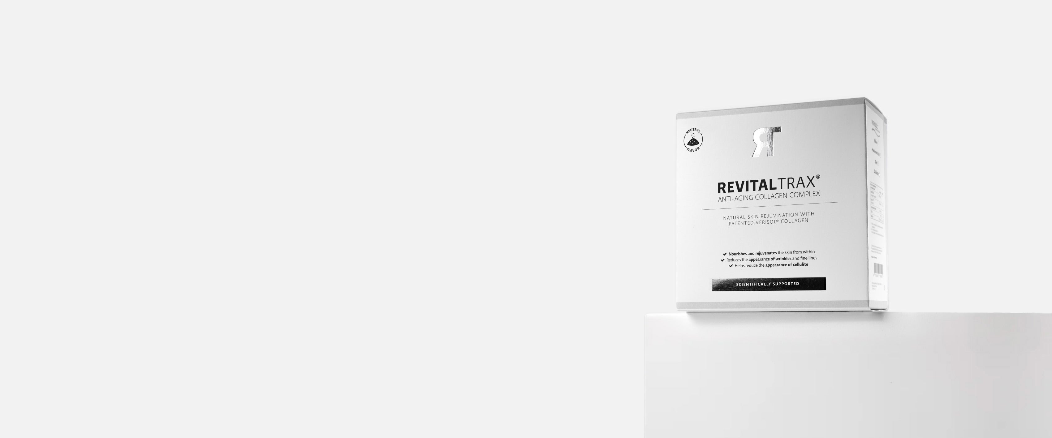 The skin consists of several layers of skin. The epidermis is the skin layer that you see from the outside, you can take care of this with the facial care products from RevitalTrax. The dermis is the skin layer that follows below. A young dermis consists of no less than 80% collagen, which keeps the skin firm and elastic and ensures that it continues to look fresh and young.
