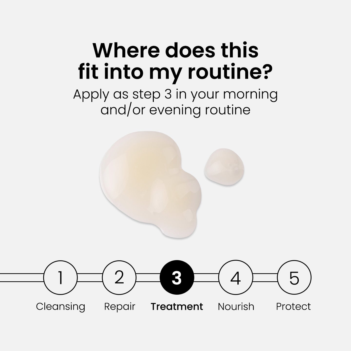 Use the serum in the morning and evening. You can also alternate it with another RevitalTrax serum depending on your skin’s needs.