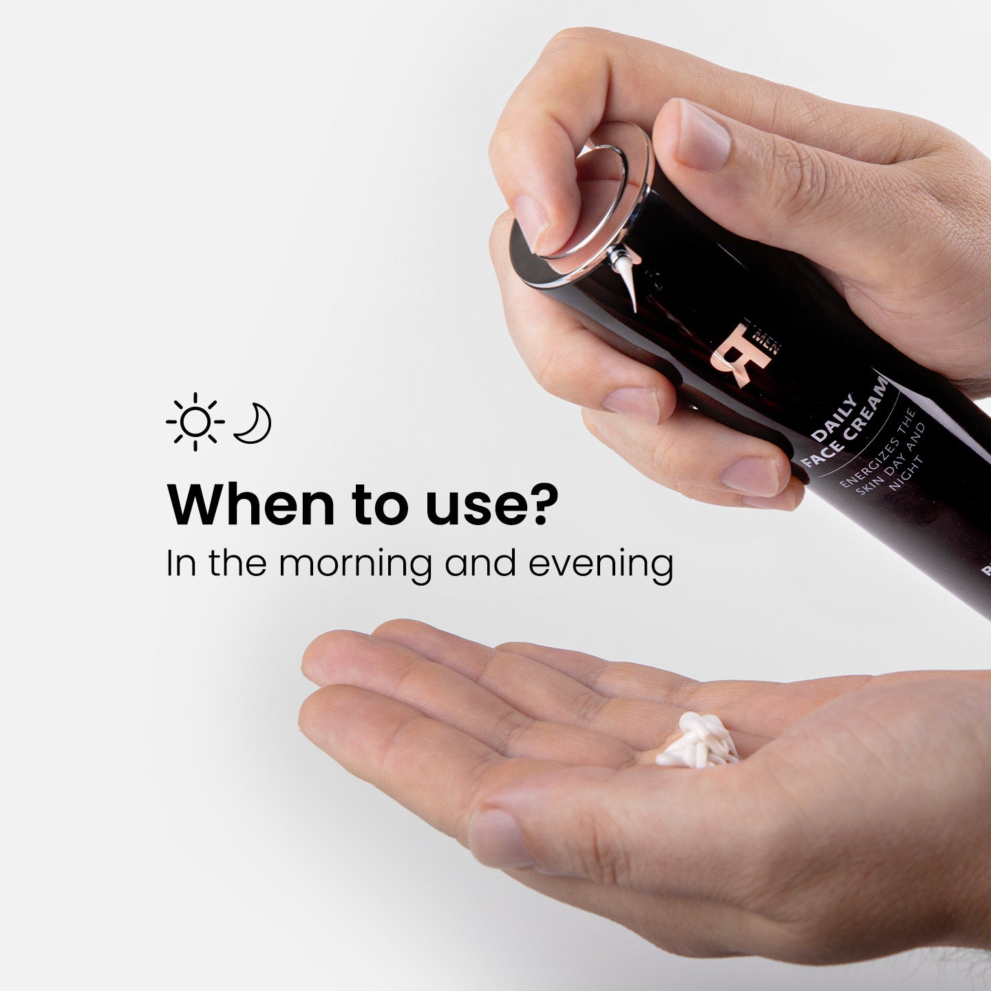 For best results, use the Daily Face Cream in both the morning and evening. To do so, use the Daily Face Wash for Men and the Daily Face Lotion for Men.
