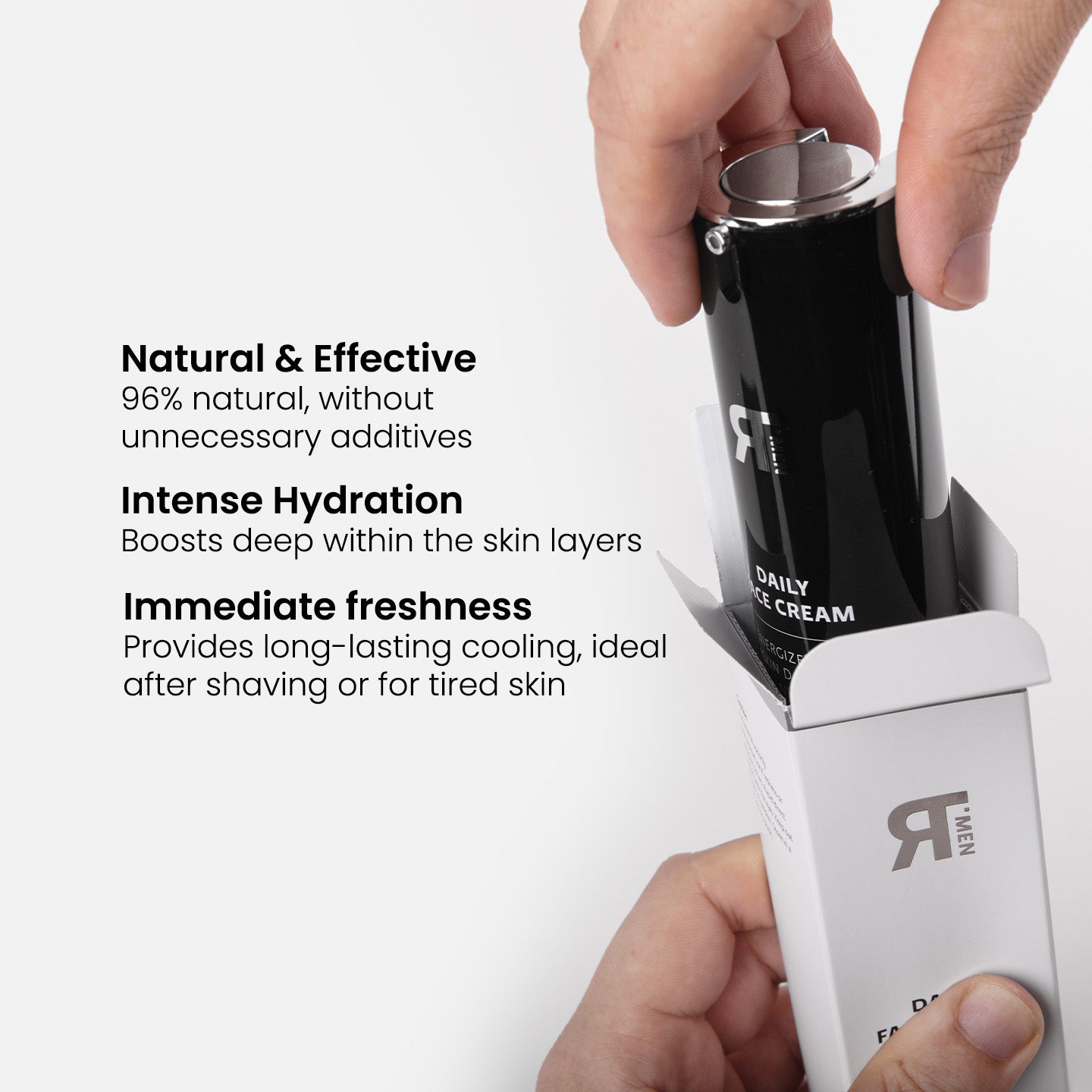 Your skin faces daily stress, environmental damage, and sometimes a lack of care. The Daily Face Cream for Men is designed to change that. It provides intense hydration and helps strengthen the skin barrier, keeping your skin firm, resilient, and in balance.