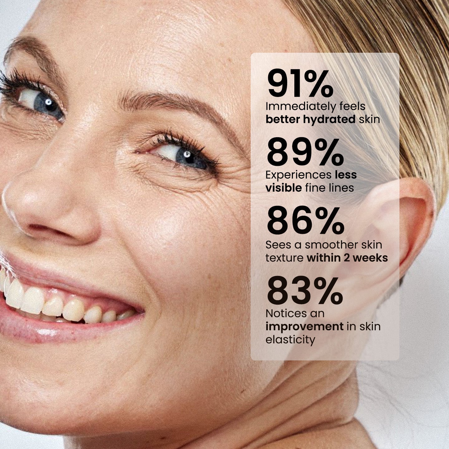 No other biologic can hold as much water as hyaluronic acid, resulting in increased smoothness, softening, reduction of wrinkles and a healthy skin barrier. Skin with a healthy skin barrier feels plumper and looks younger.