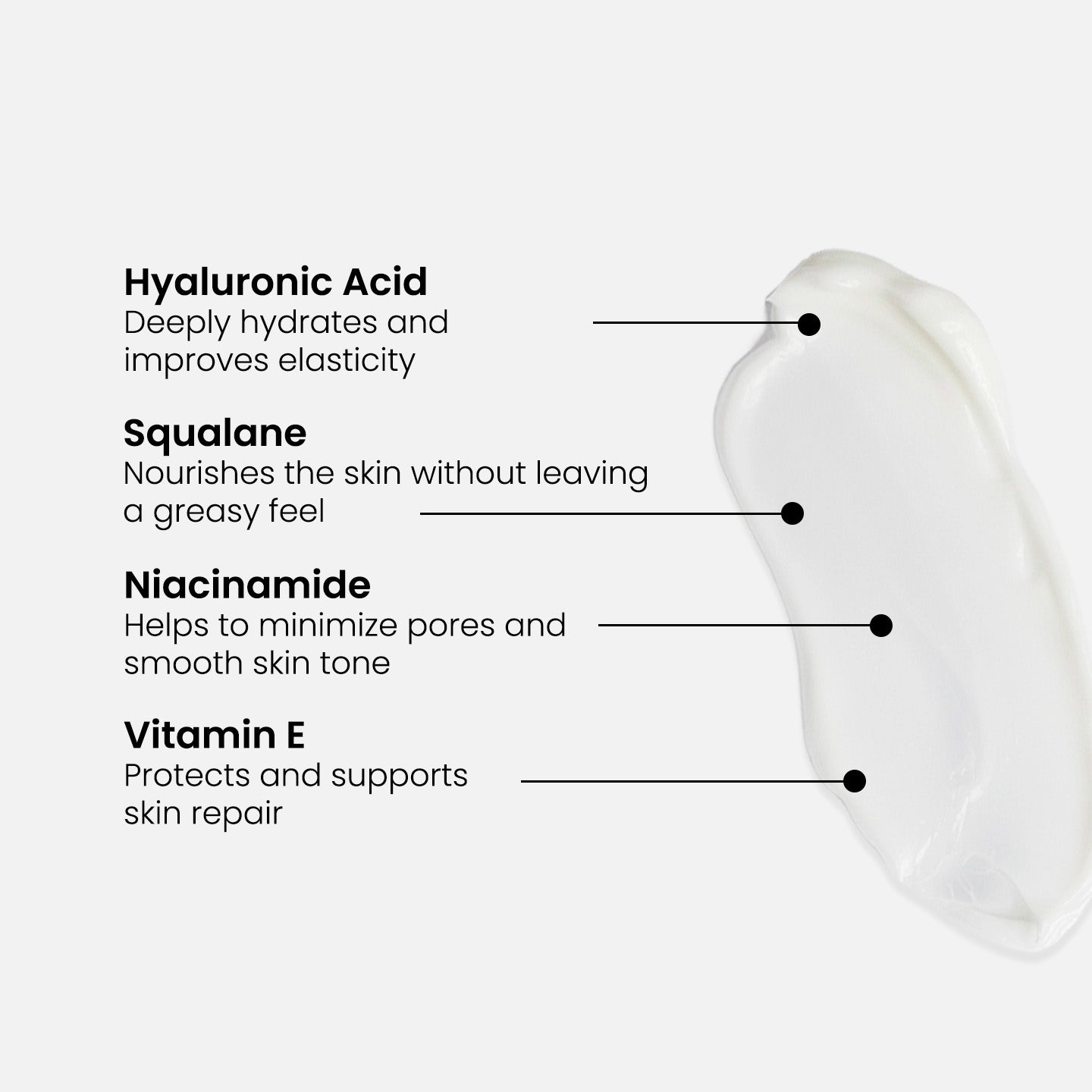 Hyaluronic acid is able to hold up to 1000 times its own weight in water and supports the recovery of dehydrated skin, but it is recommended for all skin types.