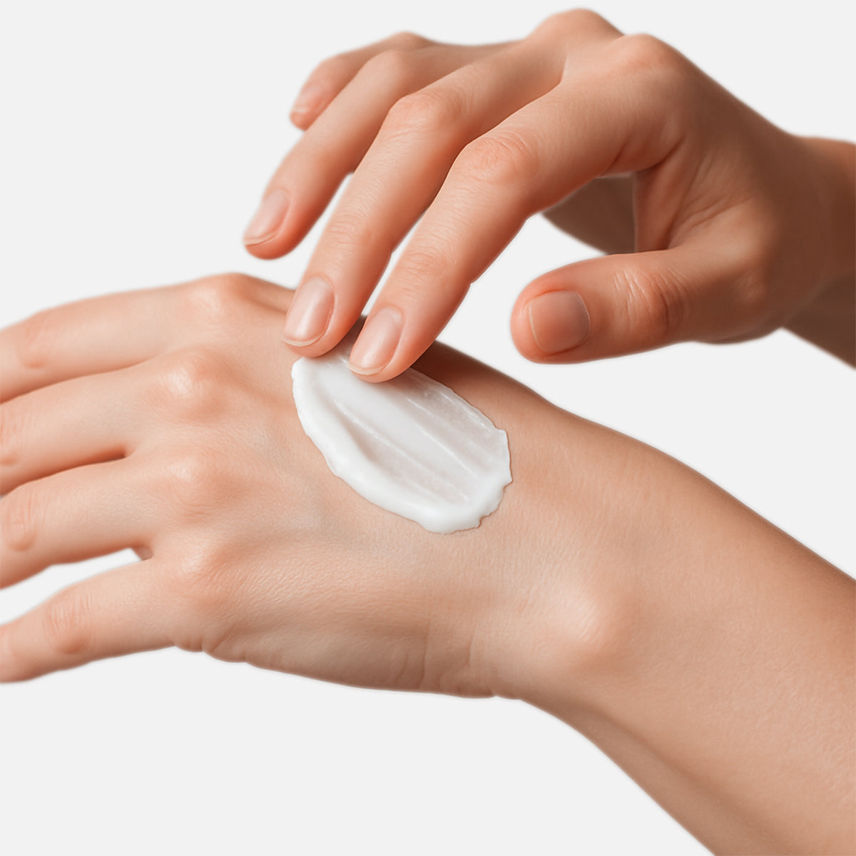 Apply an appropriate amount of lotion to your fingertips and distribute it over your neck and décolleté using upward motions.