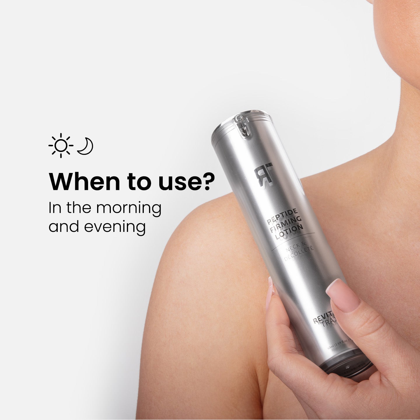 • Finally, use the Peptide Cream. Gently massage it onto your neck and décolleté for optimal care and rejuvenation.