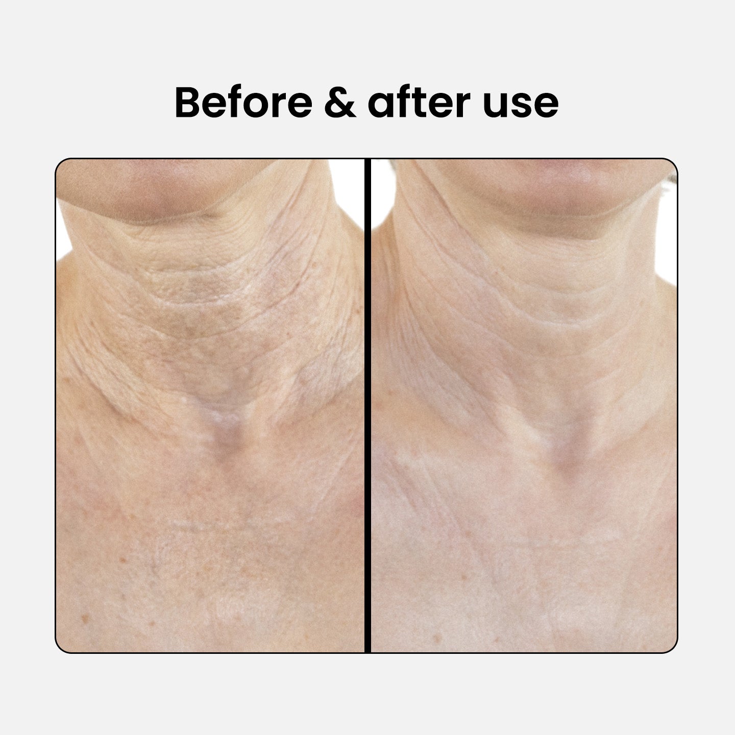 Thanks to powerful peptides and other valuable ingredients in this formula, the skin of your neck and décolleté is firmed, tightened and fine lines and wrinkles are visibly reduced.