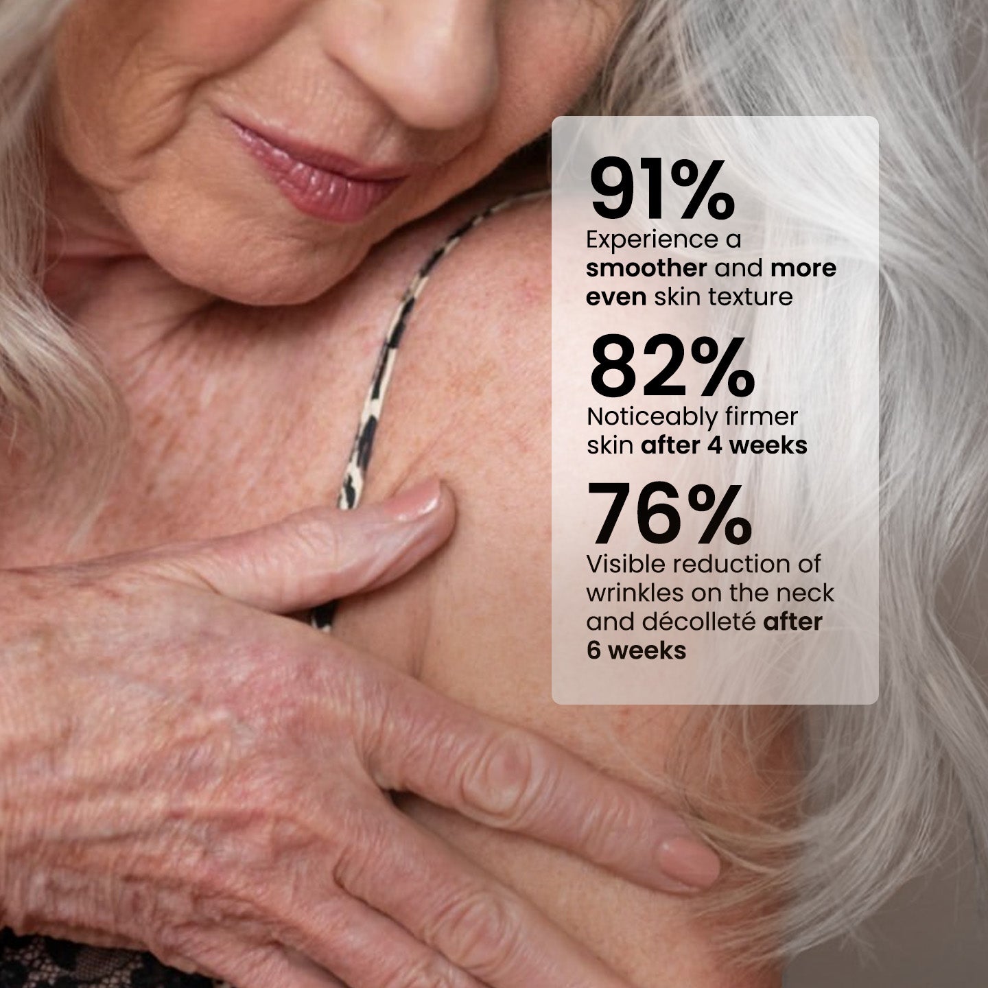 We combine several powerful peptides with antioxidants and other skin-repairing ingredients to restore your neck and décolletage to its optimal radiance. In this way, we not only help you reduce the signs of aging, but also protect your skin from further damage caused by free radicals and other external factors.