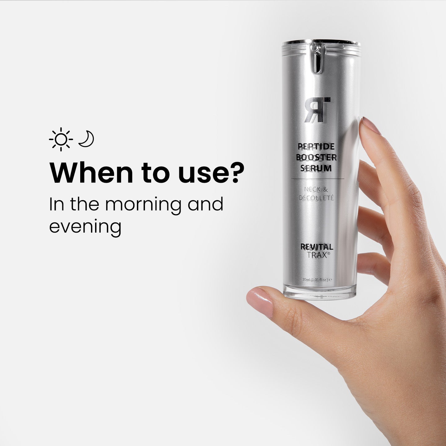 • Finally, use the Peptide Cream. Gently massage it onto your neck and décolleté for optimal care and rejuvenation.
