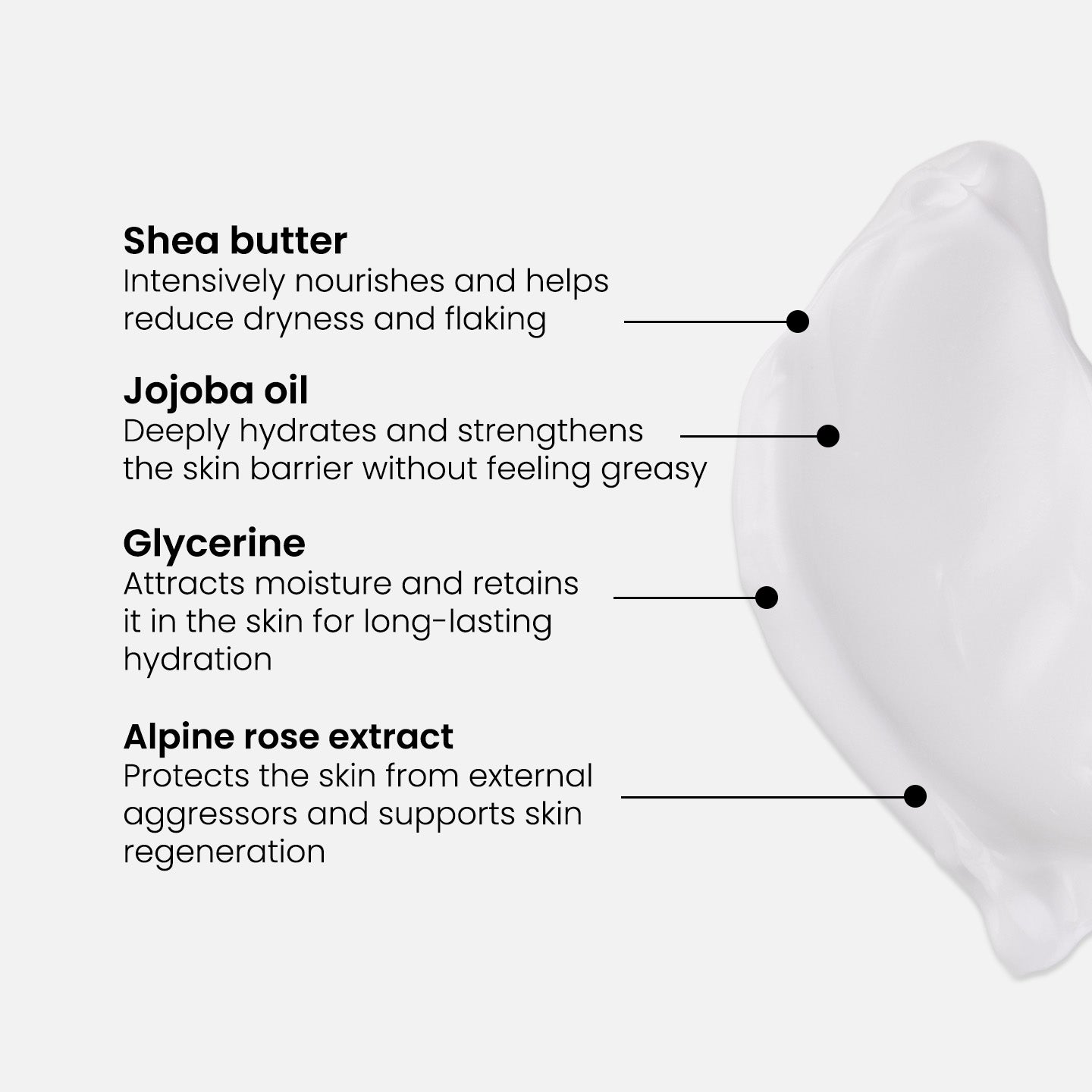 The Body Butter is the perfect choice for anyone looking to deeply nourish and hydrate their skin. Its rich, creamy texture is specially developed for dry to very dry skin and helps restore the skin barrier. With powerful ingredients like shea butter and jojoba oil, it softens and protects the skin, leaving it supple, comfortable and visibly well cared for, all day long.